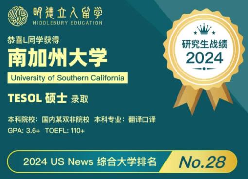 2024战绩 | 双非英专,继CMU带奖offer后,再获南加大TESOL硕士录取