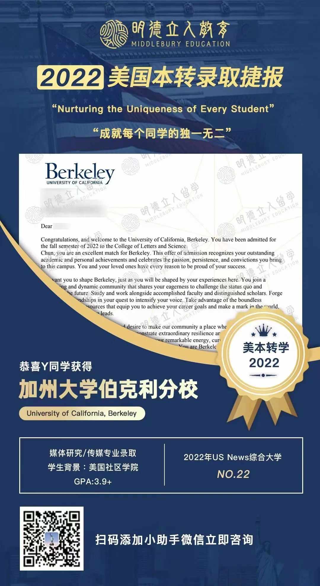 1枚加州大学伯克利分校(UCB)转学Offer!