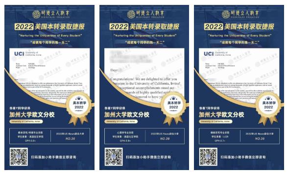 值得一提的是,我们的Y同学,拿到了UCB/UCSB/UCI/UCD所有录取!基本上拿满了UC系最好的学校!真的非常优秀!