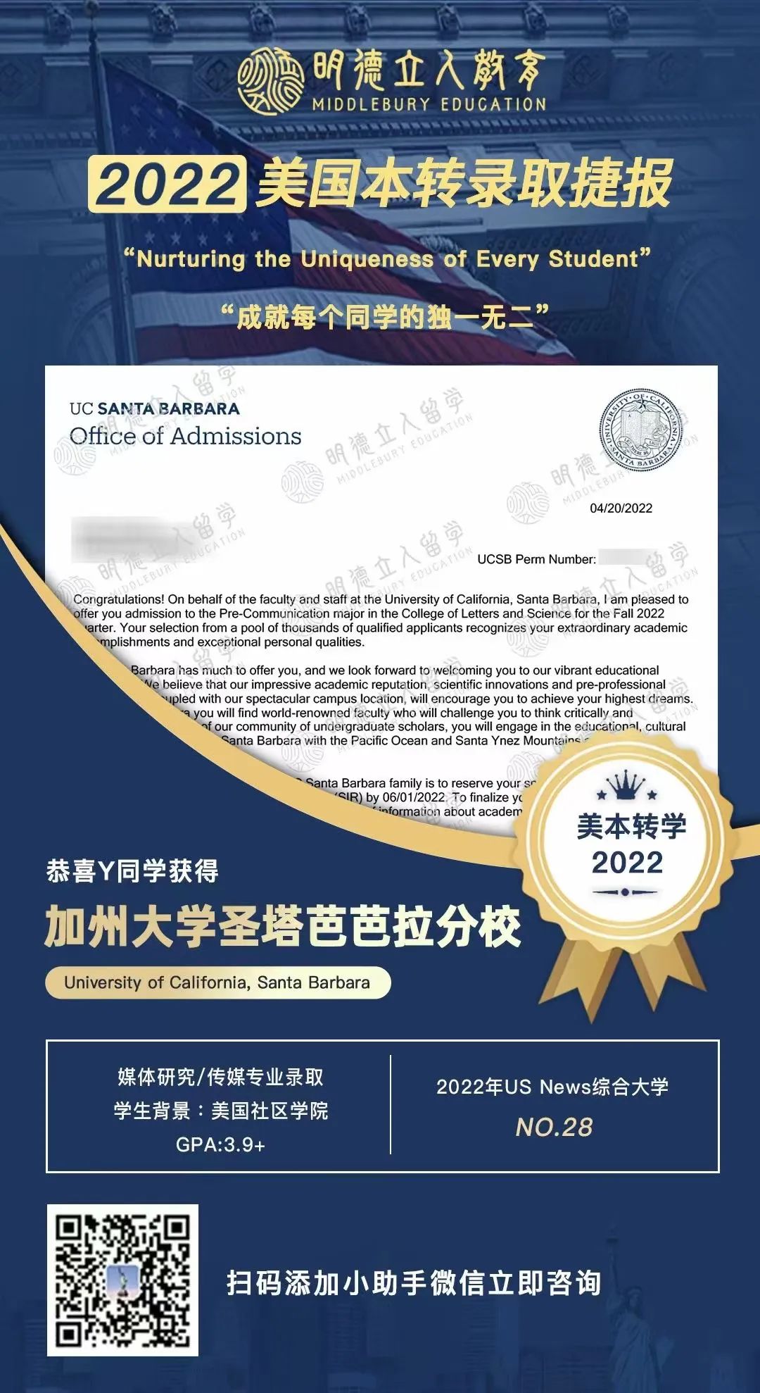 1枚加州大学圣塔芭芭拉分校(UCSB)转学Offer!