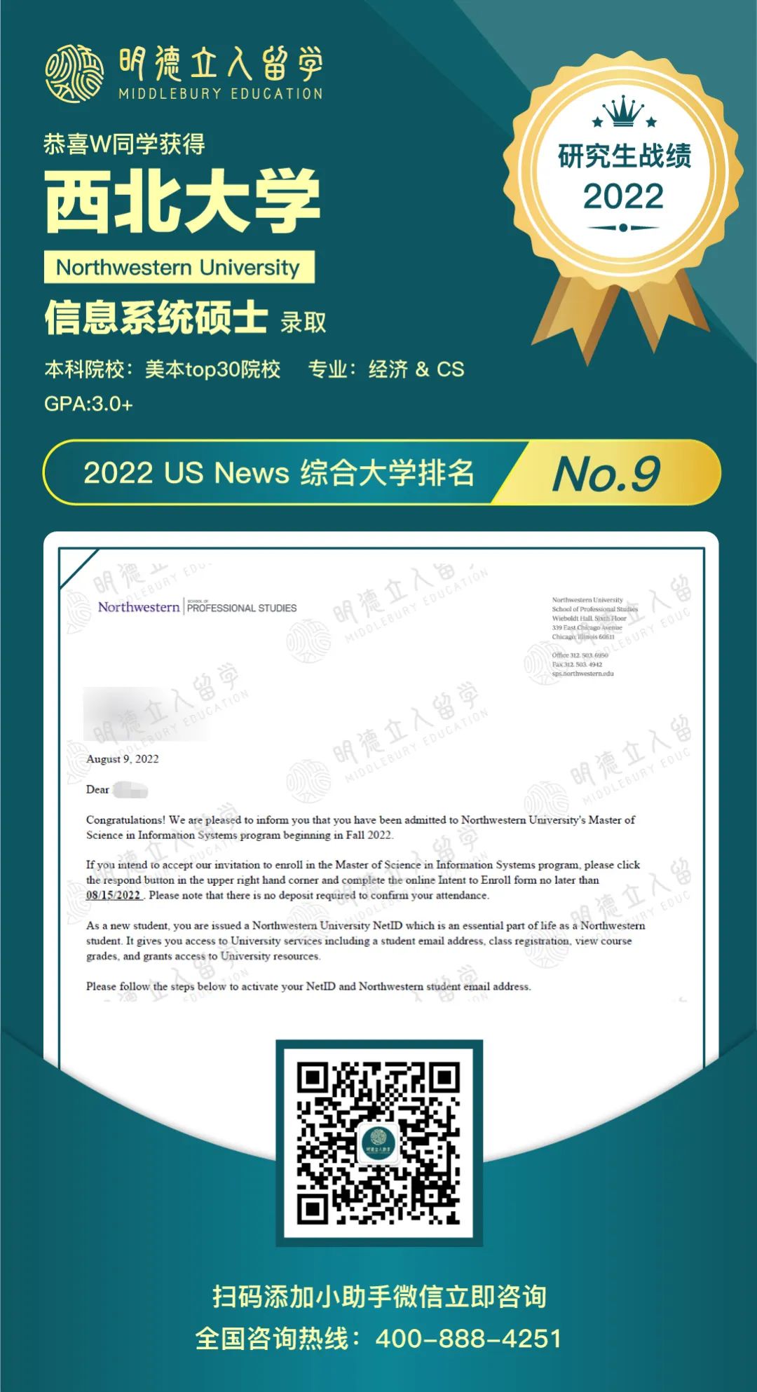 GPA3.0+经济专业,收获哥大应用分析后,再夺西北大学信息系统Offer!