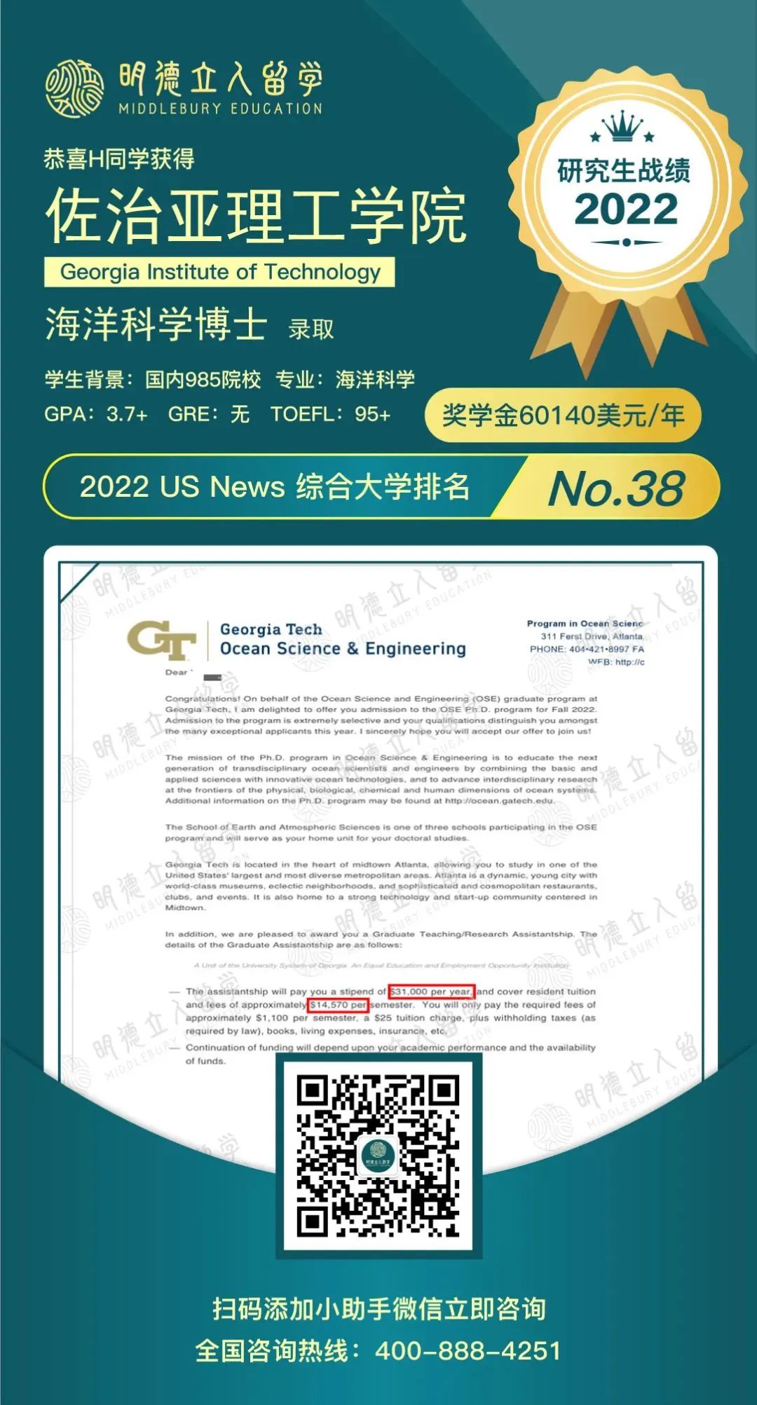 恭喜明德学子H同学,以陆本3.0的GPA成绩,直博冲刺名校成功——