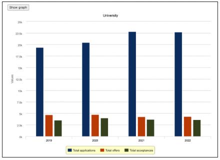 近些年来,剑桥大学申请人数猛增。2020年申请人数首次突破2万人,2021年又创下了历史新高,2022年的申请人数几乎与2021年持平。