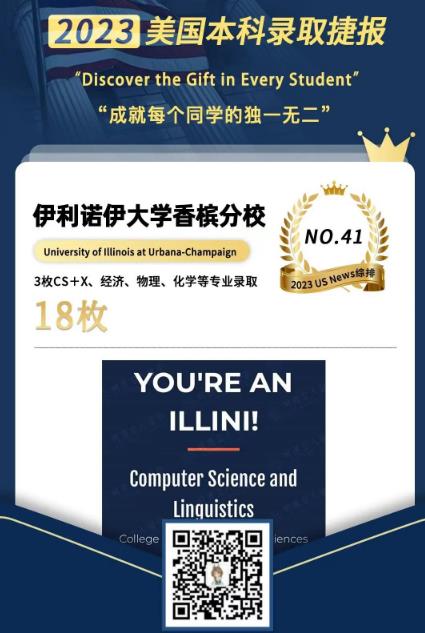 录取人数:18名学生录取专业:CS+X、经济、物理、化学等录取学校:伊利诺伊大学香槟分校
