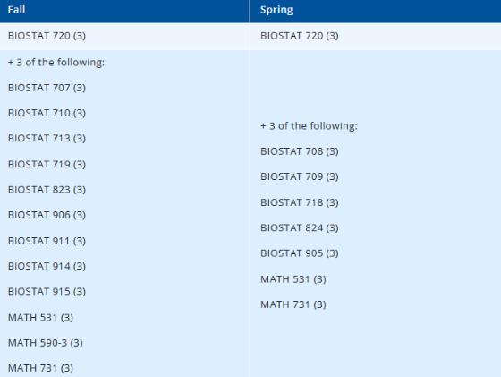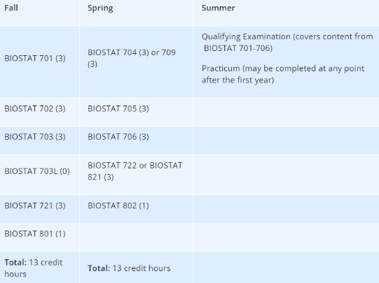 总共 24 个学分。硕士项目(6 小时)加上分级课程作业学分(18 小时)。学生将与研究生课程主任 (DGS) 一起确定课程选择。