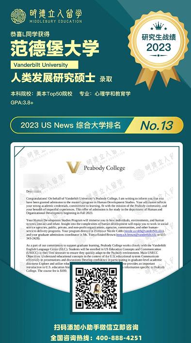 斩获范德堡大学的人类发展项目offer!
