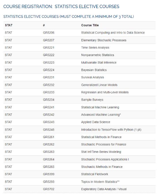 哥大的统计项目要求申请者具有一定的先修课背景: