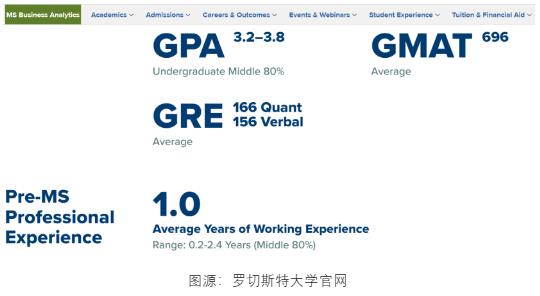 平均成绩:GPA 3.2-3.8,GRE 322,GMAT 696