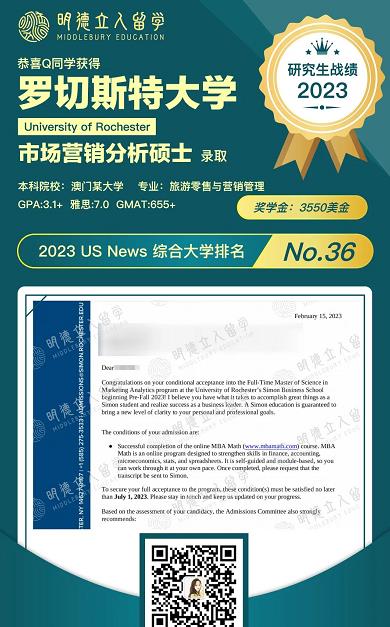 Offer雨继续,今天不仅有3枚哥大offer,西蒙商学院同样送来3枚offer,而且全部带奖!