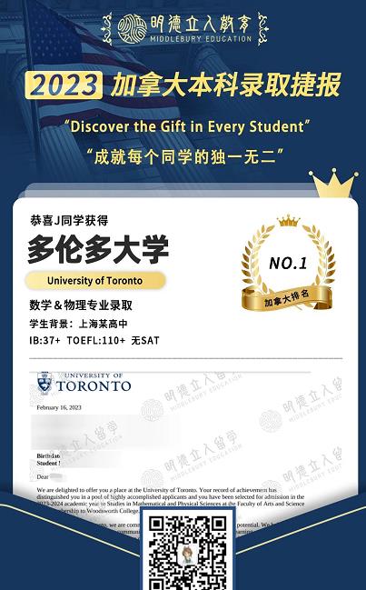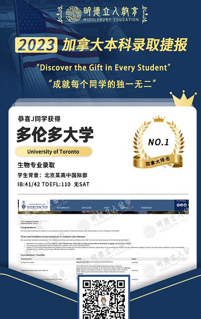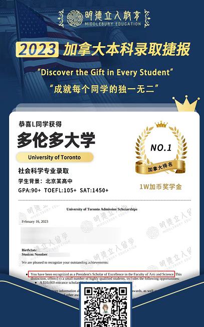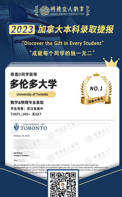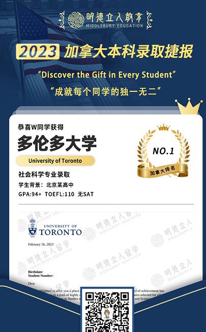 录取专业:社会科学专业录取学校:多伦多大学(1W加币奖学金)