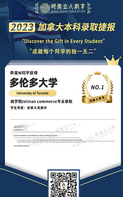 W同学加拿大某高中录取专业:商学院rotman commerce专业录取学校:多伦多大学