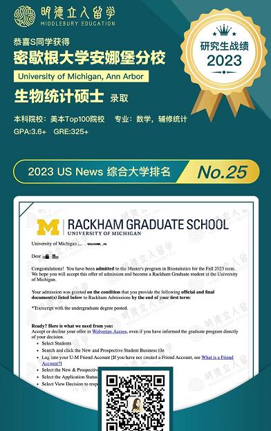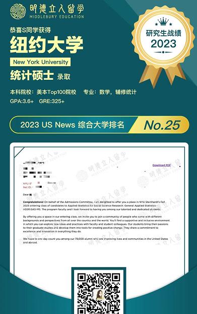恭喜明德学子C同学斩获纽约大学生物统计学offer!