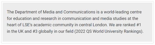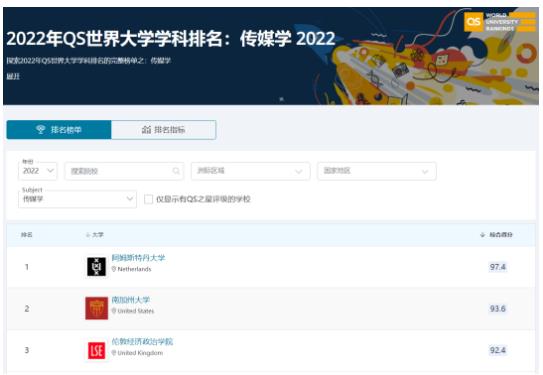 在2022年QS世界大学学科排名中,南加大和伦敦政经的Communication & Media专业分别位列全球第2和第3名!