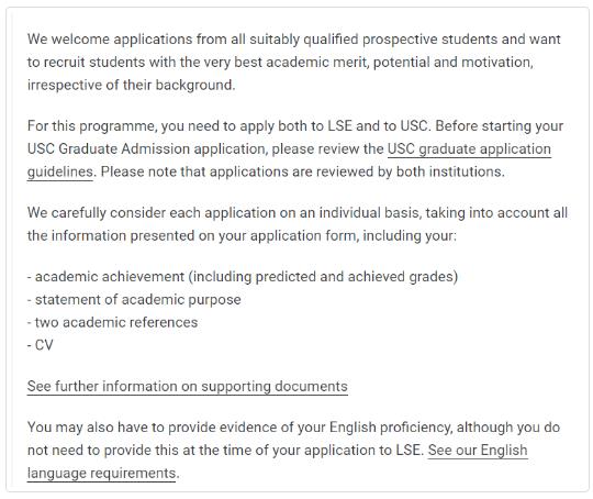 需要同时向 LSE 和 USC 提出申请,要求如下: