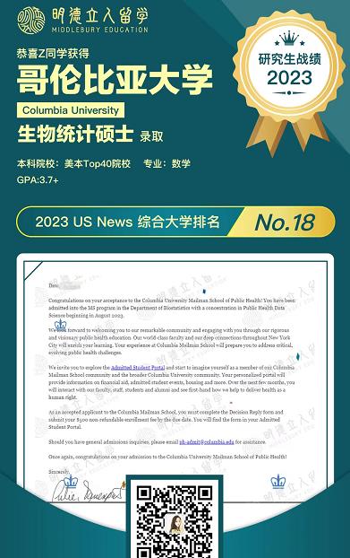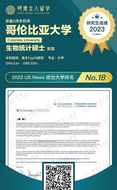 恭喜明德学子Z同学和S同学成功斩获哥大生物统计项目offer!