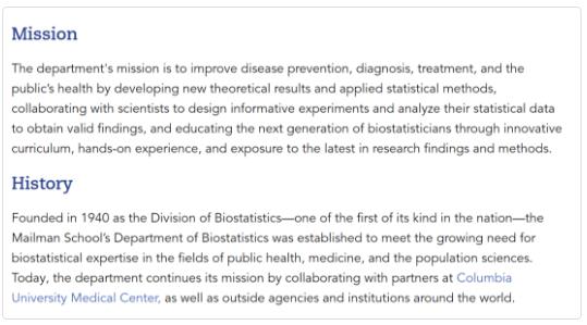 哥伦比亚大学生物统计硕士开设在Mailman公共卫生学院下,成立于1940年。