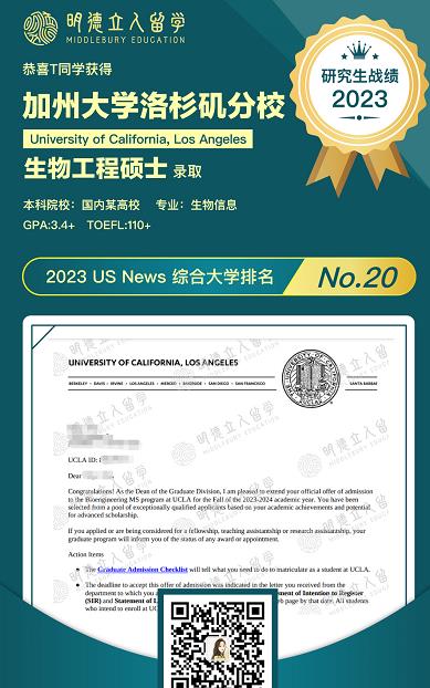 商科、理工科、文社科……名校offer纷至沓来,今天不仅有带$40000奖学金的哥大经济硕士、专排T10的NYU金工、还有我们的UCLA生物工程硕士