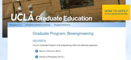 UCLA的生物工程硕士项目开设于工程应用科学学院,既有硕士学位也有博士学位,旨在为学生提供跨学科的教育,培养具有技术、工程和生命科学知识的专业人才,共有5大研究方向: