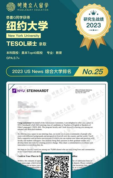 纽约大学TESOL硕士项目全称为MA in Teachers of English to Speakers of Other Languages, Non-Certification(对外英语教学),下设于教育学院。