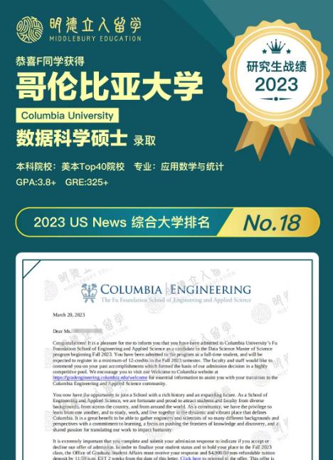 F同学先后拿下了哈佛、牛津和西北大学的数据科学offer,近日又斩获了藤校哥大的数据科学项目,这些都是世界级TOP的项目啊~