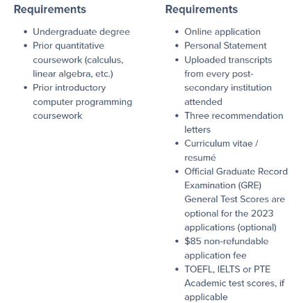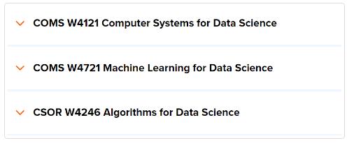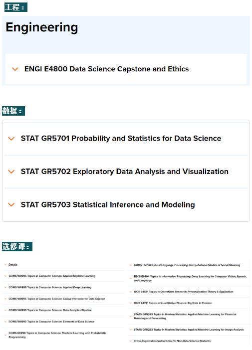 数据科学硕士课程共 30 个学分,主要是统计和 CS 这两个领域的课程。