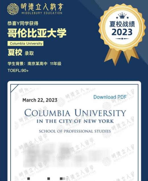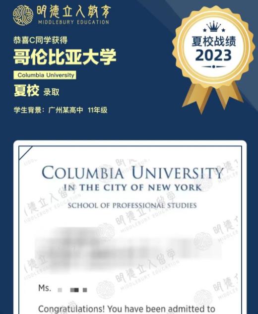 恭喜2位明德学员分别斩获: 哥伦比亚大学夏校