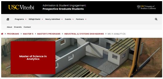 南加大的分析学硕士,将学习成为数据分析师和数据科学家所需的技能,包括总结和呈现复杂数据的能力,将数据转化为可操作的见解的能力。该计划结合了统计和机器学习建模,以解决当今数据驱动世界中的实际问题。