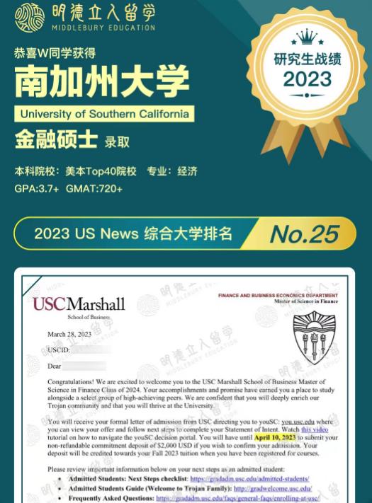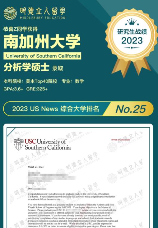 恭喜明德学子Z同学斩获USC分析学硕士!!恭喜明德学子W同学如愿拿下USC金融硕士!!