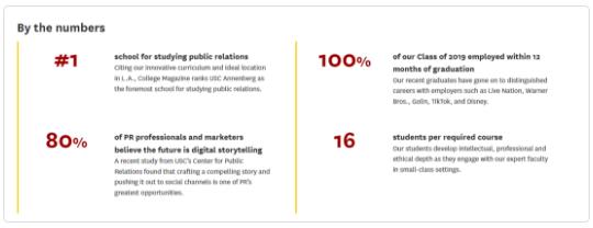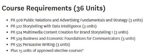 南加州大学的公共关系与广告硕士,建立在 Annenberg传媒学院下,旨在通过新闻、传播、公共外交和公共关系等领域的研究来加深学生们这个时代无处不在的变化的理解。