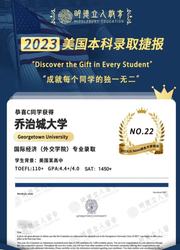 而我们的C同学本次就拿到的是乔治城大学最强外交学院的国际经济专业!!!