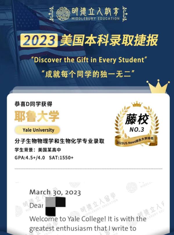 恭喜D同学在RD阶段拿到了全美第三古老、藤校耶鲁大学的分子生物物理学和生物化学专业的录取。