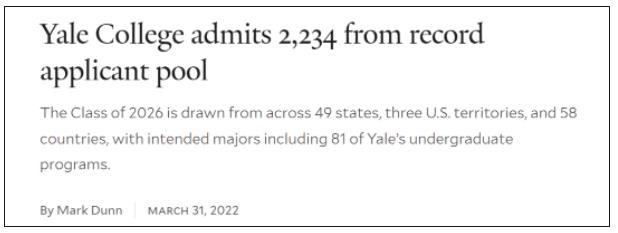 耶鲁大学今年收到了52,250名2027届学生的申请,创下了历史新高。