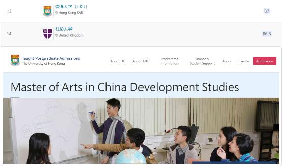 港大的中国发展研究硕士(MA China Development Studies,MAChDS)在社科院的地理系下,同时课程还与社科院下的中国发展研究国际中心紧密结合。2023QS世界学科,港大的地理排名#13