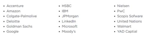 97.7%的学生表示在毕业后六个月内就业,毕业生继续在广泛的公司和组织中从事广泛的职业,包括: