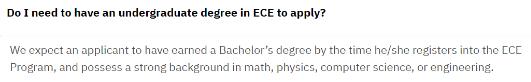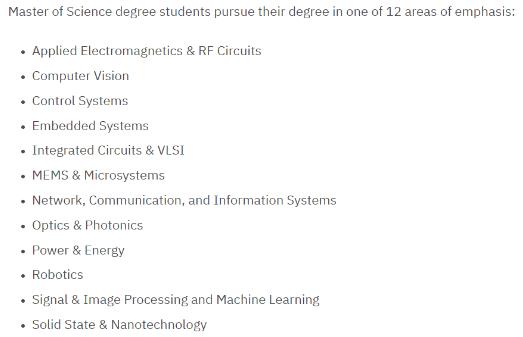 MEng 是授课式就业导向的项目,面向有兴趣在 ECE 或其分支领域拓展其技术知识的深度和/或广度的学生,有兴趣从事研究或学术工作的学生应该考虑以研究为导向的理科硕士(MS)项目。