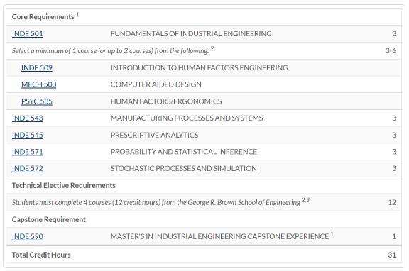 工业工程硕士 (MIE)是一个专业的非论文学位,需要 31 个学分。在任何工程或相关研究领域拥有文学士或理学学士学位的学生都可以申请。