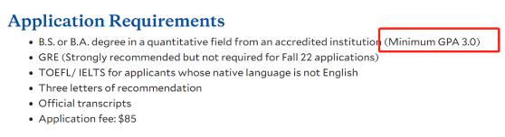 项目要求申请者提交以下内容,其中,GPA最低需要3.0
