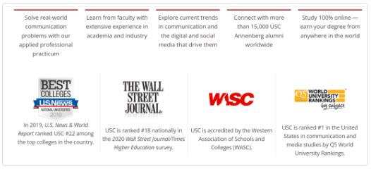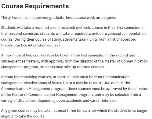 USC的传播管理专业(Master of Communication Management )更加强调传媒的理论与实践技巧,旨在培养学生设计与有效执行传媒战略的能力。