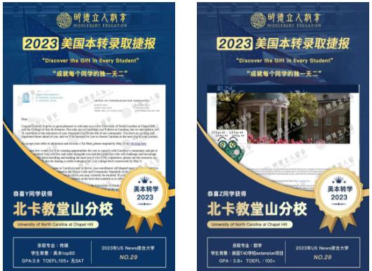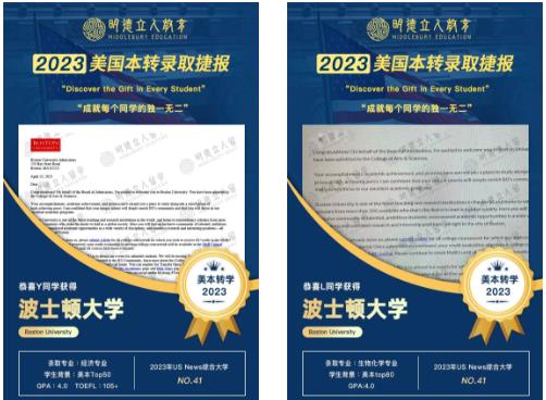 2023美国本科申请放榜结束,转学又迎来了录取高潮,恭喜各位明德学员分别斩获: