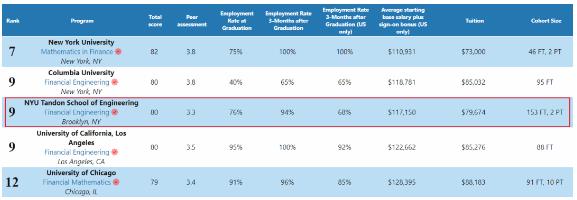 QuantNet 2023 MFE金融工程排名中,NYU的金工项目位列全美Top9,就业前景十分可观~