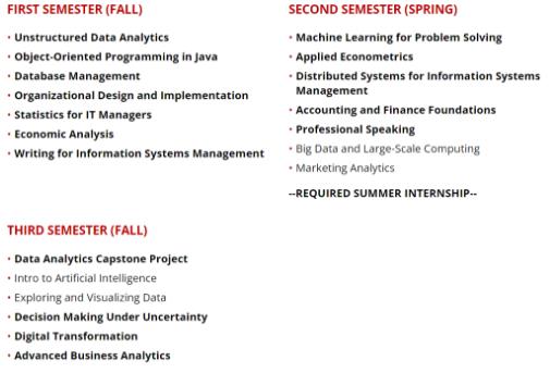16 个月 BIDA 课程遵循与 MISM 相同的学术时间表,包括核心课和选修课。