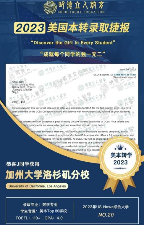 恭喜2位明德学员斩获: 加州大学洛杉矶分校转学Offer 加州大学圣塔芭芭拉分校转学Offer