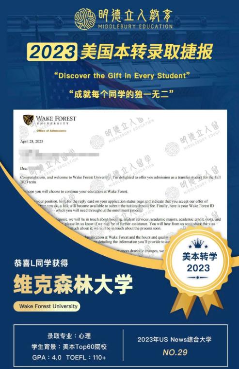 维克森林大学 Offer+1(2023US.News美国大学排名#29)