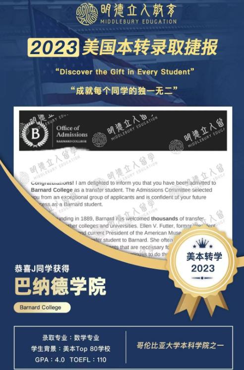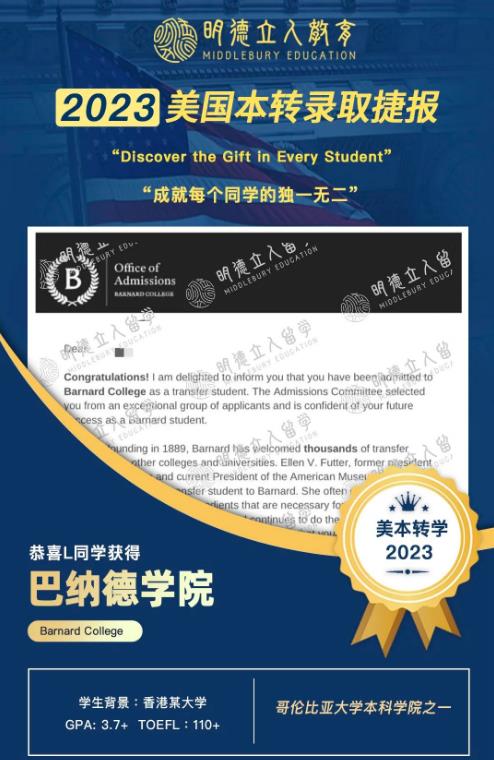 恭喜3位明德学员斩获巴纳德学院转学Offer。小藤在此不得不介绍一下该学院。