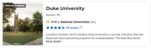 杜克大学坐落于美国北卡罗纳州的达勒姆 ,达勒姆是一个非常有趣的地方。在达勒姆、罗利和教堂山在内的大三角地区,有大量的现场音乐表演和活动。在2021年美国报道的最佳居住地中,达勒姆排名#2!