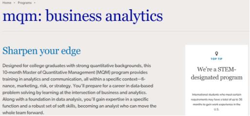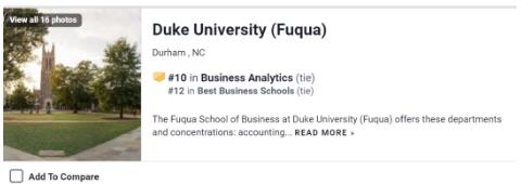 杜克的商业分析全美排名#10,专为具有强大定量背景的学生而设计,提供分析和沟通方面的培训。