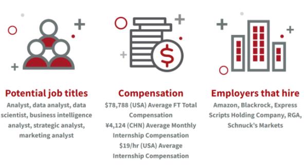 根据学校报告可知,该项目学生未来从事的职业方向为分析师、数据分析师、数据科学家、商业智能分析师、战略分析师、营销分析师等。