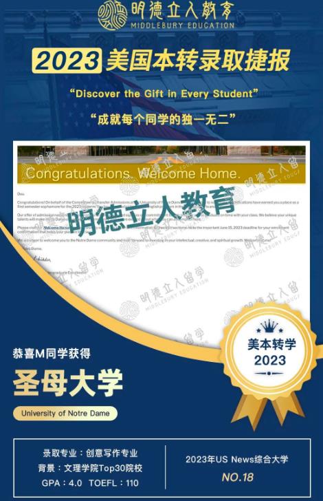圣母大学每年会收到近100份春季转学申请,但录取名额非常少,仅5-10人。