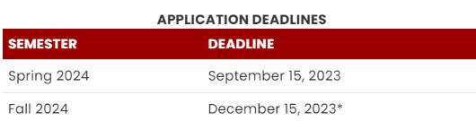 24春季申请截止日期为9月15日,秋季截止日期为11月15日。