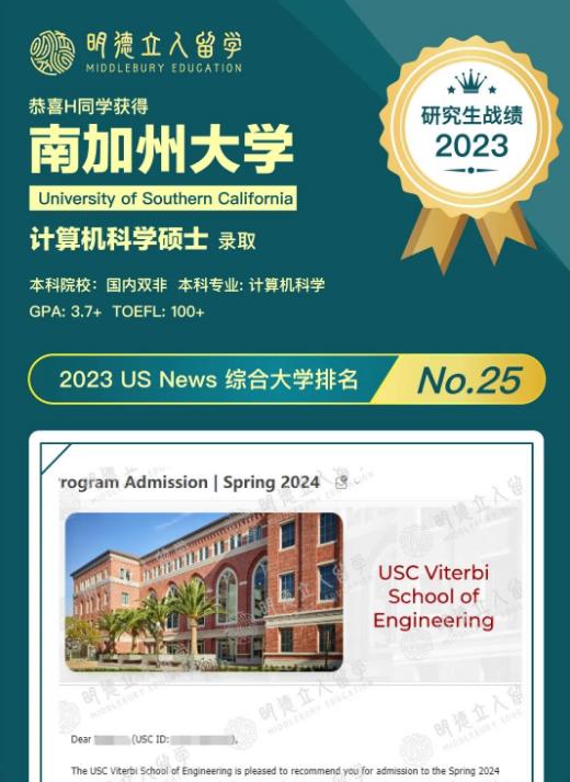 今天小德依然携着好消息走来,恭喜明德学子H同学拿下南加大CS offer!从双非到全美T25,这一路的艰辛只有学生自己知道。